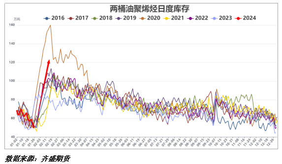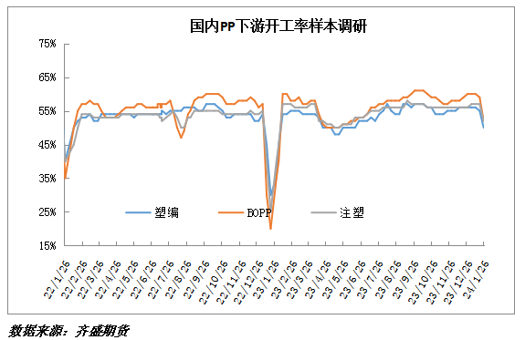 每年春节期间PP生产企业正常生产,但是部分下游企业停工放假,为了节后正常开工,下游企业多会选择节前备货。不过今年受宏观大环境以及近几年备货亏钱影响,下游企业备货积极性明显不高,甚至在1月下旬,下游已经基本结束备货。