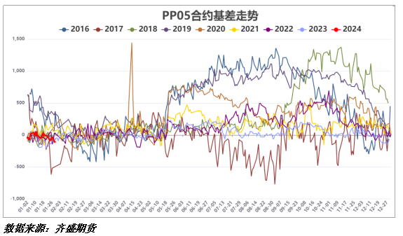 1月中旬以来,商品市场整体气氛较好,叠加下游节前备货预期,PP一度止跌反弹超过300元/吨。不过现货端跟涨发力,尤其是下游备货不及预期下市场气氛悲观,现货呈现滞涨状态,价差明显走弱,一度由前期正基差收窄至负基差,目前现货贴水100元/吨附近。1月底下游备货基本结束,虽然部分贸易商成交尚可,但多为买入基差套利(买现货空期货)。
