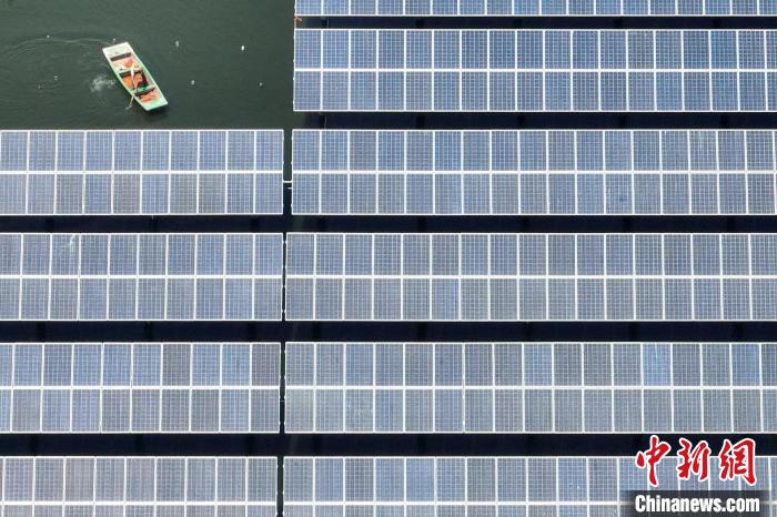 航拍常州市武进区前黄镇渔光互补光伏发电基地,整齐划一熠熠生辉。 中新网记者泱波摄